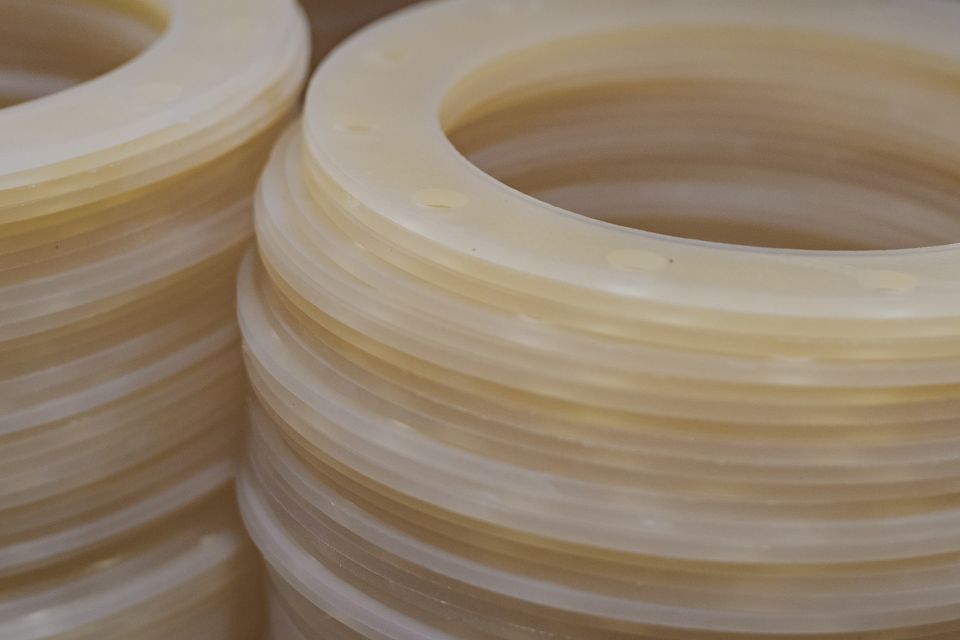 Con le nostre macchine a controllo numerico possiamo produrre i medi ed i grandi lotti, oltre che nelle varie tipologie di gomma anche con siliconi o poliuretani, con o senza inserto metallico.